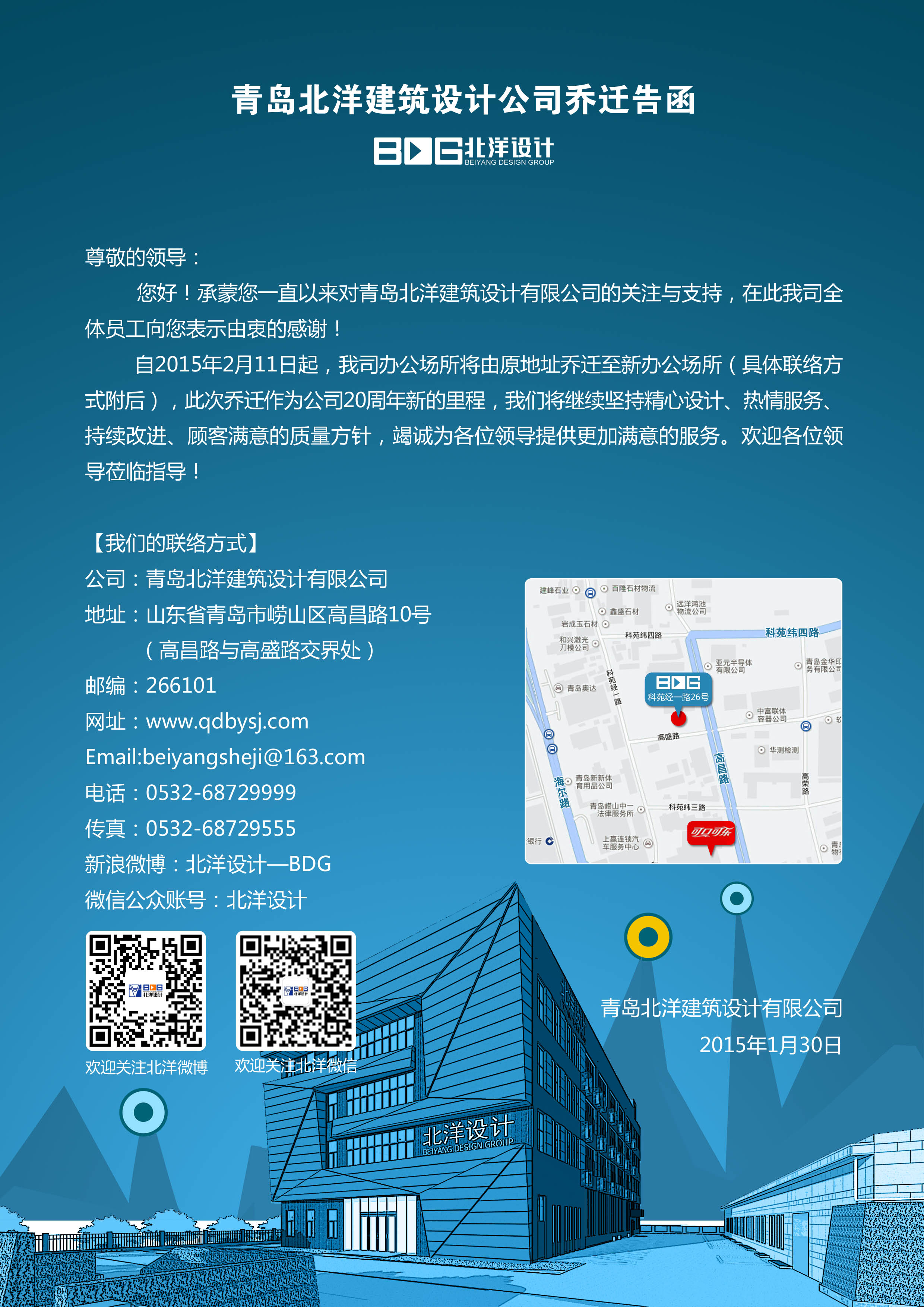 青島北洋建筑設(shè)計有限公司喬遷告函
